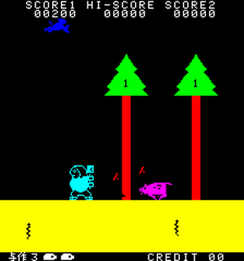 In 1979, Shin Nihon Kikaku (later known as SNK) published the arcade game Yosaku, though it was likely developed by Orca, which you may know as a predecessor to Toaplan. The game draws its concept from the 1978 enka song by Saburō Kitajima, which was quite popular in Japan for a time and inspired several video games. The most successful of these was Kikori no Yosaku for the Epoch Cassette Vision, which features similar gameplay to the Orca/SNK original.
